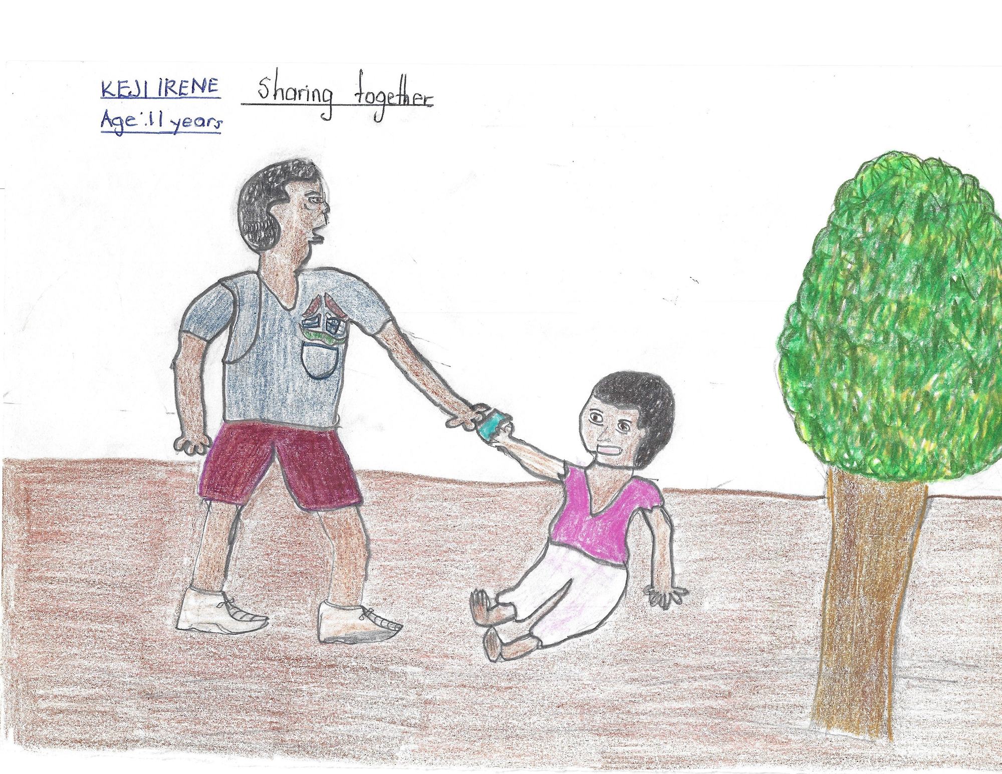 Victoria asked the children to draw about what it means to be Friends With The World. These pictures show children supporting others who are ill, feeding the animals and supporting their friends.